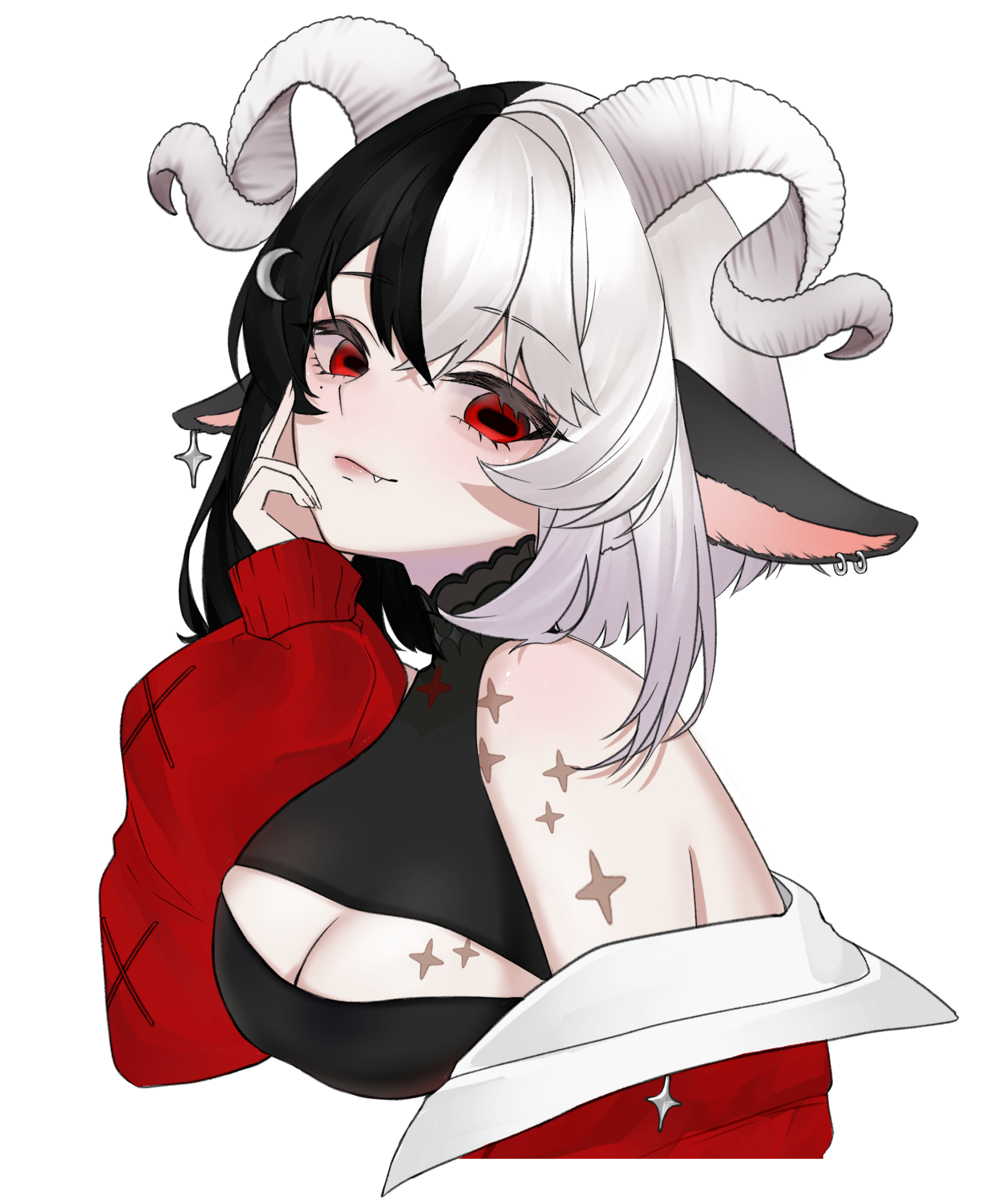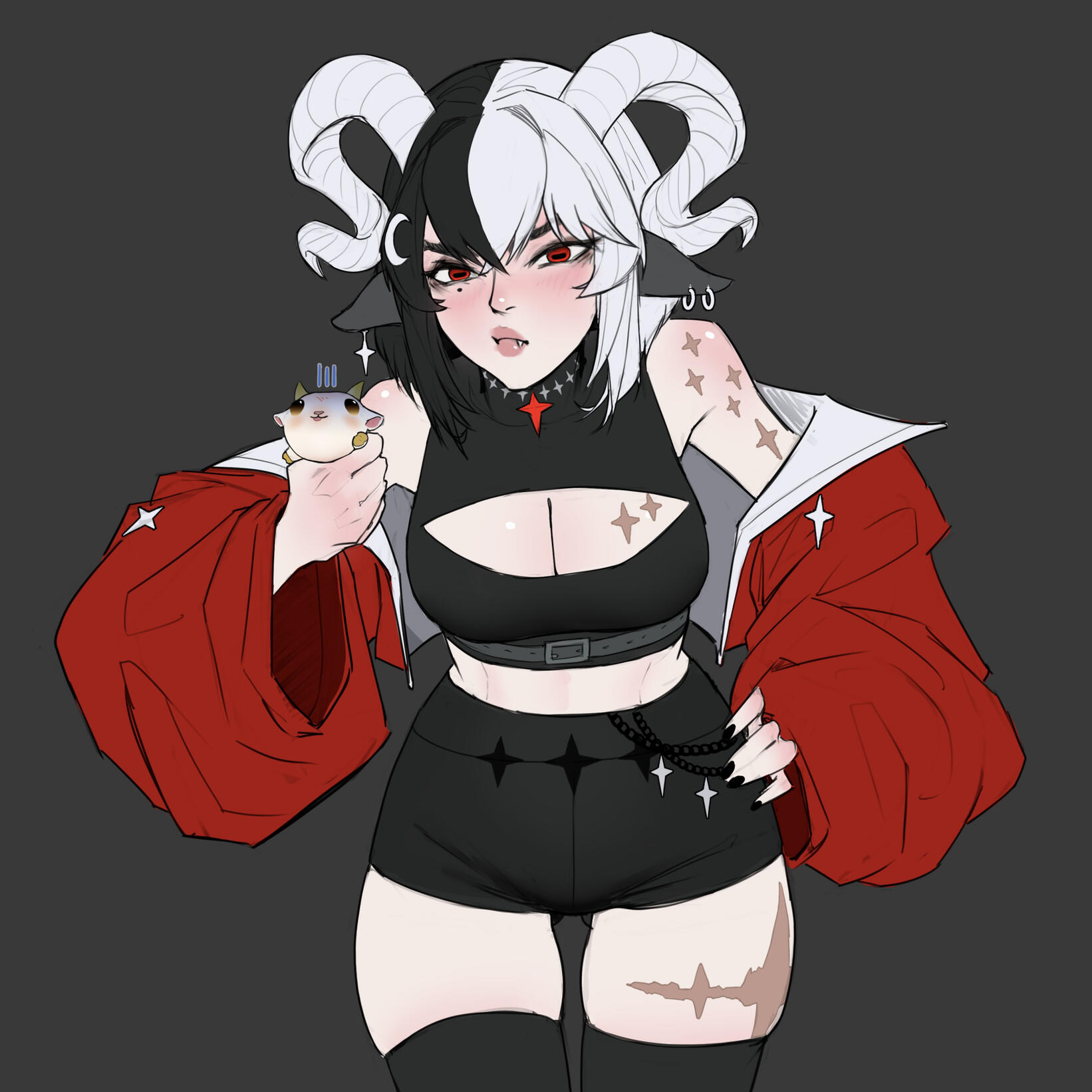 A star, ancient and heavy, collapsed as it was dying. A single, piece from the supernova fell through the demon realm, piercing the ground. At the moment of impact, for some unknown reason, Nyxi was born, a demon goat formed from the dark soil and the white hot memory of a star. She was a creature of two worlds, perfectly belonging to neither. A creature of contradictions.